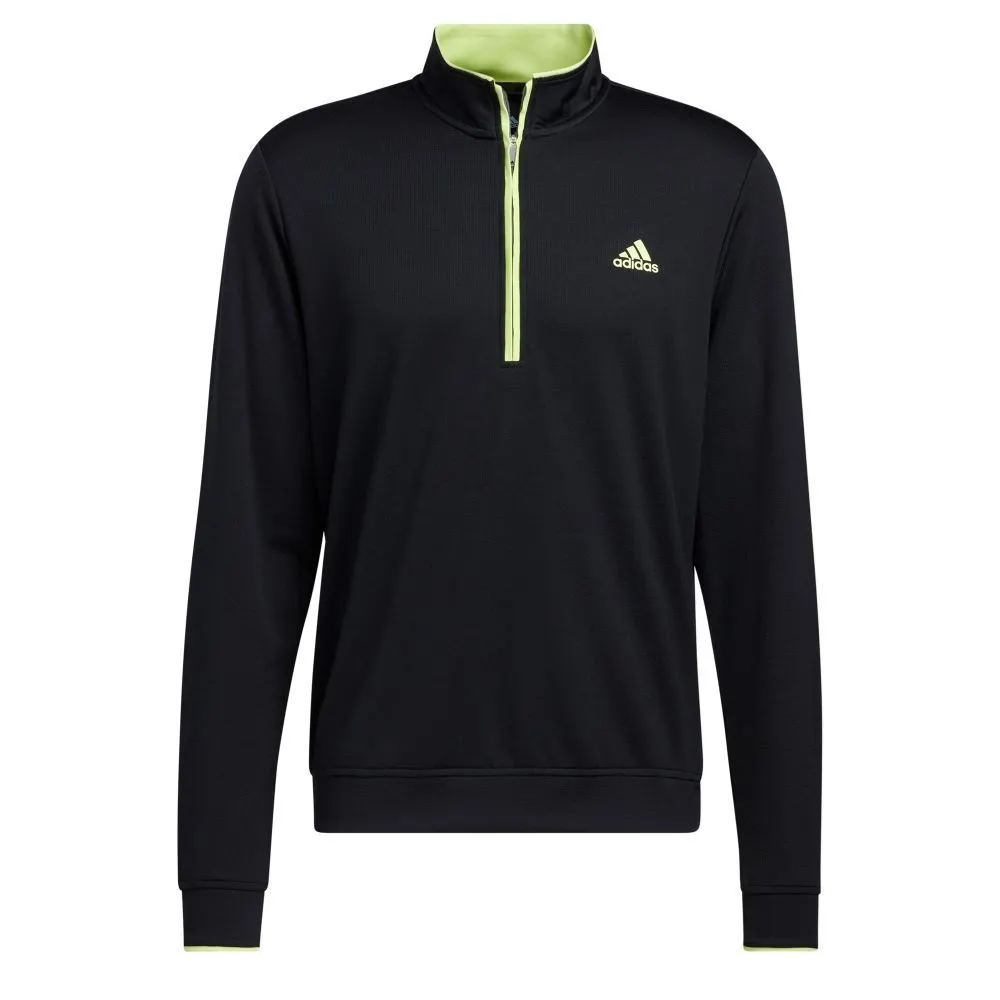“Chilly weather calls for a lightweight layer. This adidas golf pullover is made of soft knit for comfort on the course. Moisture-absorbing AEROREADY keeps you dry, and built-in UV coverage lets you play with confidence on sunny days. Made with 100% recycled materials, this product represents just one of our solutions to help end plastic waste.”