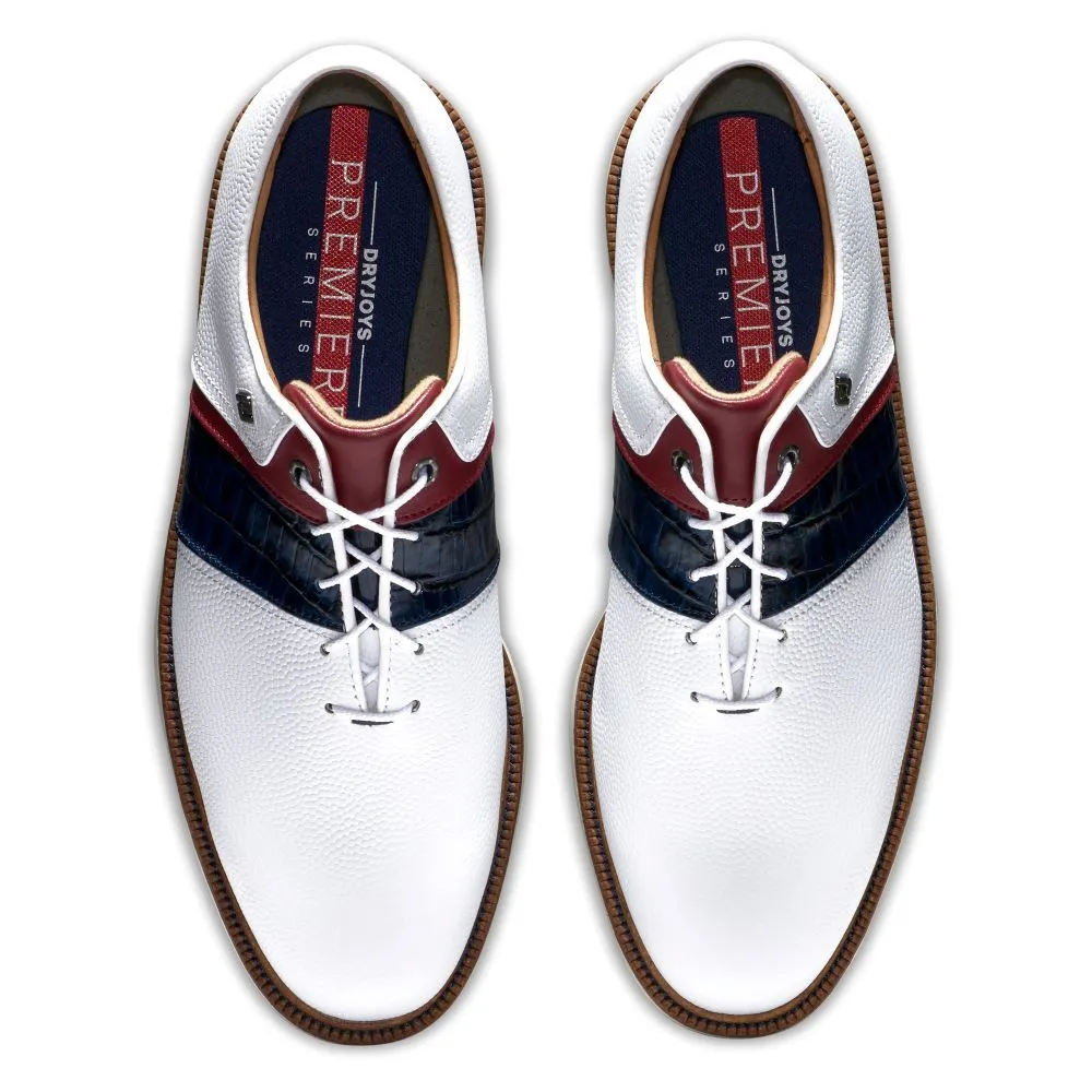 Full rounded toe character, standard forefoot and instep with a slightly narrow heel. Refined toe shape for a classic profile. Soft, Supple, waterproof, Pittard’s leather uppers featuring patterns that reflect the iconic style of yesteryear. Estane® TPU, provides enhanced traction on all surfaces. Ortholite EcoPlush FitBed® for enhanced stability and comfort. Featuring Pulsar Low Profile Cleats by Softspikes. 1-Year Waterproof Warranty