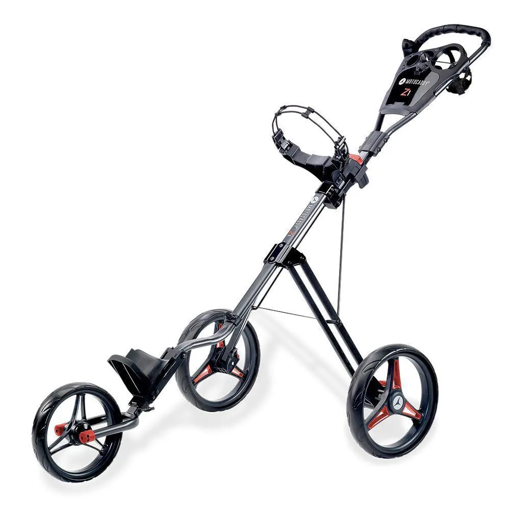 The Z1 features a simple two-step folding system that makes the trolley easy to transport and store in your car boot. Complete with a foot parking brake, easy-push ergonomic handle and adjustable height settings, when on the course the trolley delivers exceptional performance.