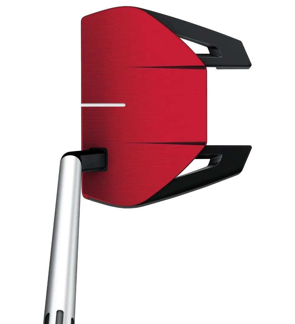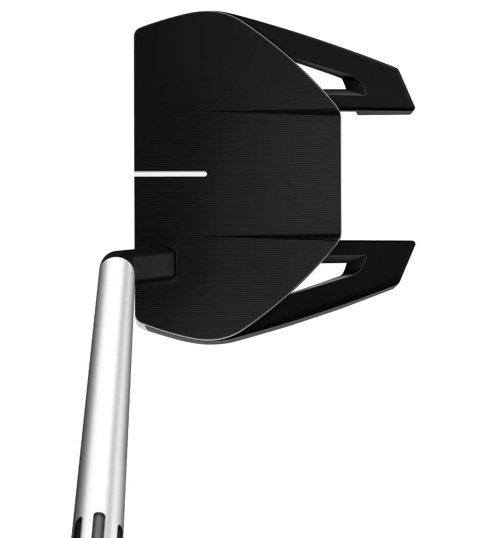 Spider GT sets a new standard in terms of performance and contemporary construction. The modern wing design has sharp angular features and extreme perimeter weighting for optimal forgiveness. Made from lightweight 6061 Aluminum, the 145g top plate eliminates excess weight in the middle of the putter. Steel side weights (80g per weight for a total of 160g) create a heavy frame for stability and distance control. Only 18% of the weight is centered in the middle to stabilize deflection on off-center strikes for maximum forgiveness.